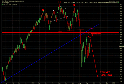 August 16, 2011 Bearish H&S pattern completed as expected now waiting for a consolidation phase