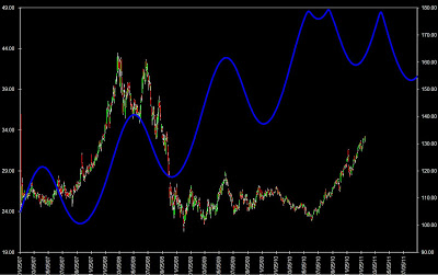 .Jupiter-Saturn cycle and DBA (Agricoltural commodities ETF) years from 2007 to 2011.