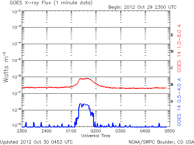 Goes X-ray satellite 1minute data plot provided by th SWPC