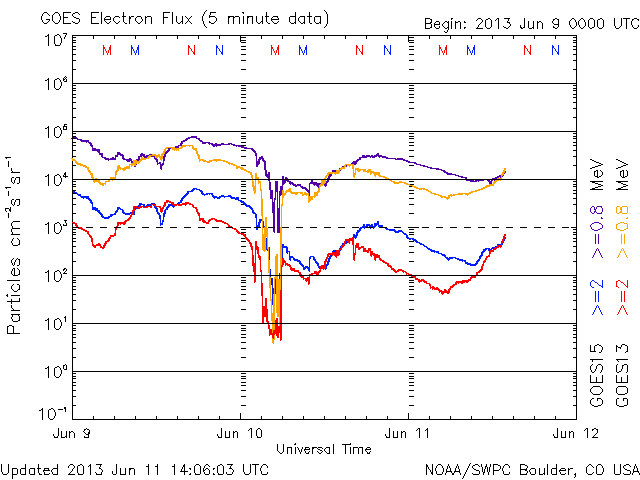 strikes the Earth's magnetic field 3 days after the event. The solar