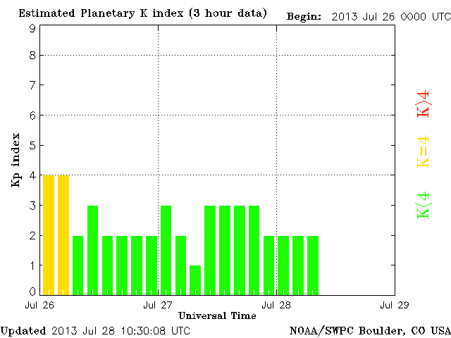 Last 30 Days Daily Geomagnetic Data27-day Space Weather Outlook TableWSW Solar Wind PageEstimated 3-hour Planetary Kp-index