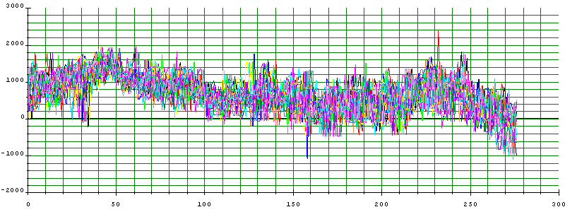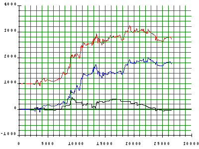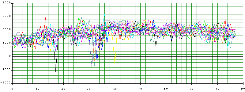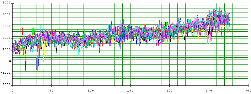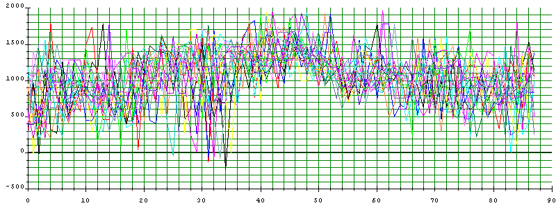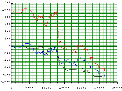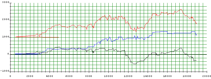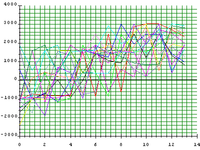 However, notice the saturation on a profit curve. It is interesting also to look at the way individual profits change, keeping in mind, that curve number, say, 3 is not always for the same Neural Network, as they are being born and terminated all the time:
