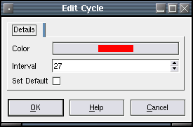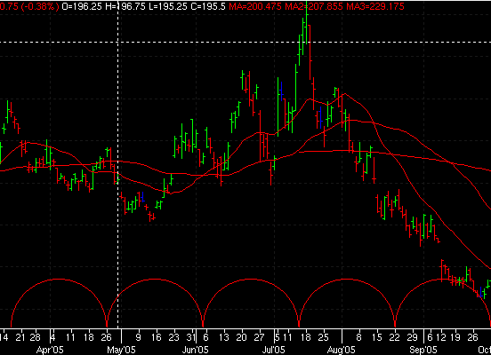 To drag the Cycle across the chart, click the left mouse button on the first "grab box". The Cycle will then follow the mouse pointer. To drop the Cycle, click the left mouse button.To adjust the bar spacing between each arc, click the left mouse button on the second "grab box". The Cycle will then resize itself as you move the mouse pointer. To drop the Cycle, click the left mouse button.