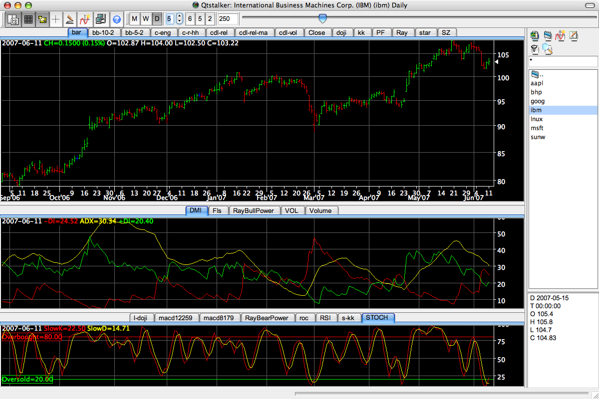 Qtstalker is a user friendly Technical Analysis package for GNU/Linux (and hence other Unix-like systems). Similar to commercial wares such as Metastock, Supercharts and Tradestation. Keeps to a lean, simple design for speed, portability, and low resource usage. Because it uses a plugin model, Qtstalker can easily be extended.