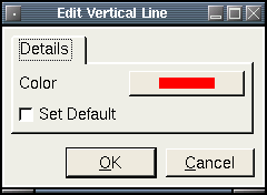 To drag the VerticalLine across the chart, click the left mouse button on any of the grab boxes. The VerticalLine will then follow the mouse pointer. To drop the VerticalLine, click the left mouse button.Delete:
